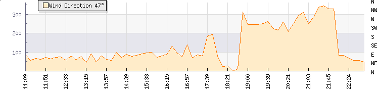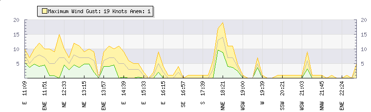 In the last few minutes the wind was North North West at an average speed of 1 knots, reaching up to 1 knots and a low of 0 knots. The gust strength is1 knots above the minimum speed |