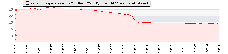 | GPS Co-ordinates: | S 26º 58' 42, E 27º 21' 54 | | ASL: | 4770 feet | | Sunrise / Sunset: | 06:22 / 18:04 | | Beaufort Scale: | Light Air |