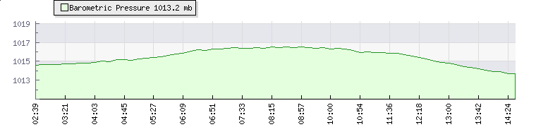 In the last few minutes the wind was Southerly at an average speed of 1 mph, reaching up to 1 mph and a low of 0 mph. The gust strength is1 mph above the minimum speed |