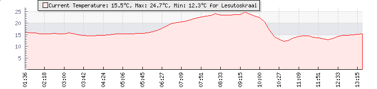 | GPS Co-ordinates: | S 26º 58' 42, E 27º 21' 54 | | ASL: | 4770 feet | | Sunrise / Sunset: | 05:18 / 18:31 | | Beaufort Scale: | Light Air |