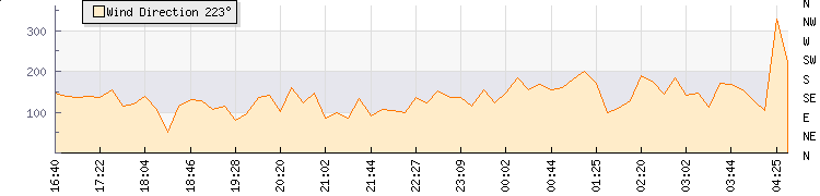 In the last few minutes the wind was South South East at an average speed of 1 kmh, reaching up to 2 kmh and a low of 0 kmh. The gust strength is2 kmh above the minimum speed |