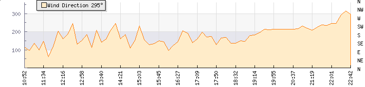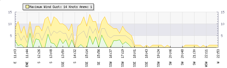 In the last few minutes the wind was South Easterly at an average speed of 7 knots, reaching up to 10 knots and a low of 4 knots. The gust strength is6 knots above the minimum speed |