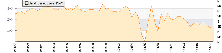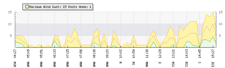 In the last few minutes the wind was Southerly at an average speed of 6 knots, reaching up to 11 knots and a low of 2 knots. The gust strength is9 knots above the minimum speed |