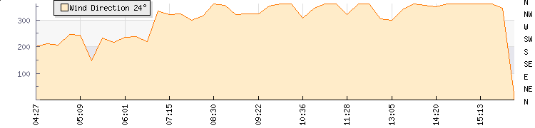 In the last few minutes the wind was Northerly at an average speed of 12 kmh, reaching up to 16 kmh and a low of 8 kmh. The gust strength is8 kmh above the minimum speed |