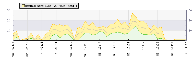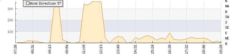 In the last few minutes the wind was North Easterly at an average speed of 8 kmh, reaching up to 14 kmh and a low of 2 kmh. The gust strength is12 kmh above the minimum speed |
