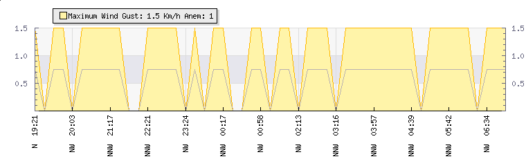 In the last few minutes the wind was North Westerly at an average speed of 1 kmh, reaching up to 2 kmh and a low of 0 kmh. The gust strength is2 kmh above the minimum speed |
