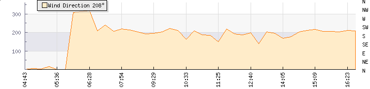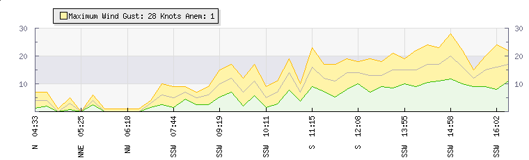 In the last few minutes the wind was Southerly at an average speed of 17 knots, reaching up to 24 knots and a low of 11 knots. The gust strength is13 knots above the minimum speed |
