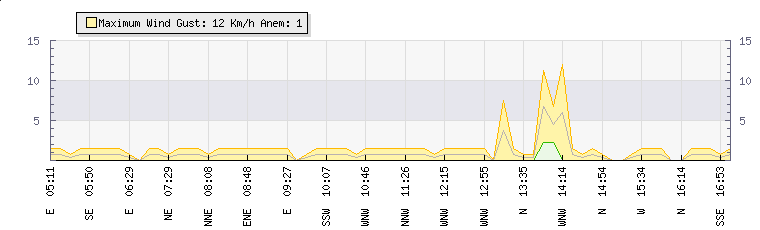 In the last few minutes the wind was Northerly at an average speed of 0 kmh, reaching up to 0 kmh and a low of 0 kmh. The gust strength is0 kmh above the minimum speed |