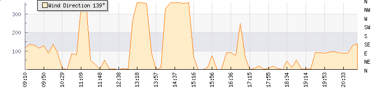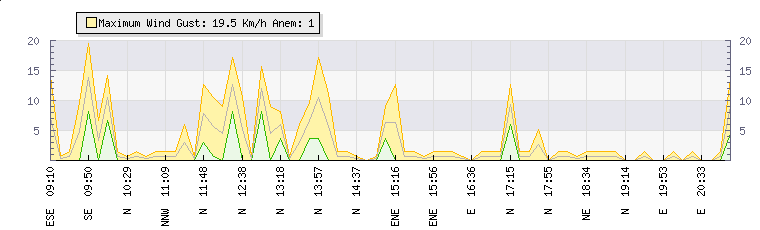 In the last few minutes the wind was Northerly at an average speed of 0 kmh, reaching up to 0 kmh and a low of 0 kmh. The gust strength is0 kmh above the minimum speed |