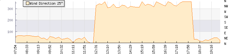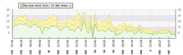 In the last few minutes the wind was North Westerly at an average speed of 7 mph, reaching up to 9 mph and a low of 6 mph. The gust strength is3 mph above the minimum speed |
