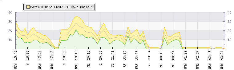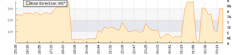 In the last few minutes the wind was Northerly at an average speed of 1 kmh, reaching up to 2 kmh and a low of 0 kmh. The gust strength is2 kmh above the minimum speed |