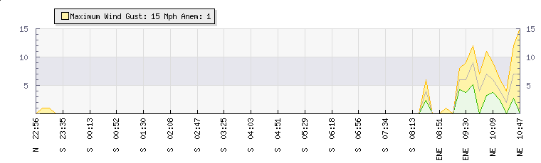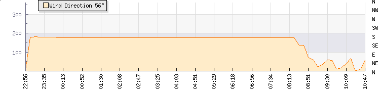 In the last few minutes the wind was Southerly at an average speed of 0 mph, reaching up to 0 mph and a low of 0 mph. The gust strength is0 mph above the minimum speed |