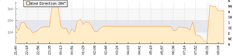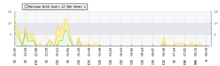 In the last few minutes the wind was East North East at an average speed of 1 mph, reaching up to 1 mph and a low of 0 mph. The gust strength is1 mph above the minimum speed |