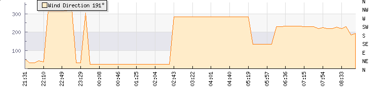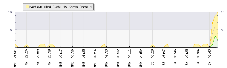 In the last few minutes the wind was North North East at an average speed of 0 knots, reaching up to 0 knots and a low of 0 knots. The gust strength is0 knots above the minimum speed |