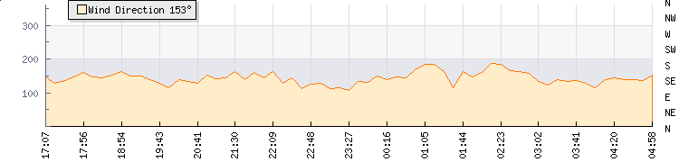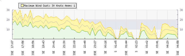 In the last few minutes the wind was South Easterly at an average speed of 4 knots, reaching up to 7 knots and a low of 0 knots. The gust strength is7 knots above the minimum speed |