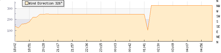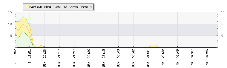 In the last few minutes the wind was North Westerly at an average speed of 0 knots, reaching up to 0 knots and a low of 0 knots. The gust strength is0 knots above the minimum speed |
