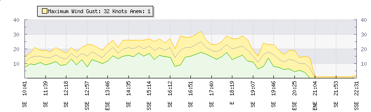 In the last few minutes the wind was South Easterly at an average speed of 1 knots, reaching up to 1 knots and a low of 0 knots. The gust strength is1 knots above the minimum speed |