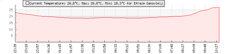| Wind Gust: | 31 km/h | Min Temp: | 18.3 °C | Max Temp: | 21.9 °C | | Wind Average: | 22 km/h | Min Hum: | 71 % | Max Hum: | 87 % | |  |