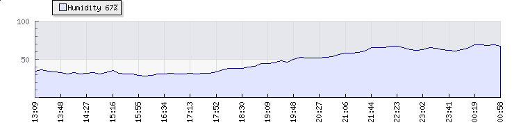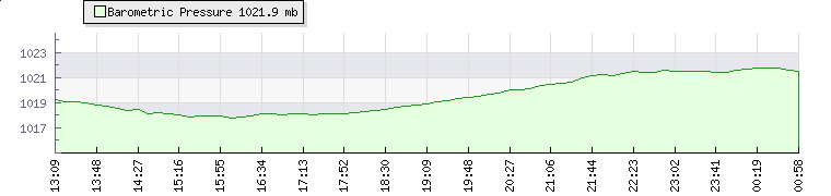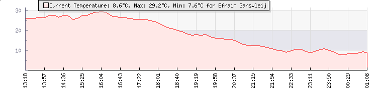 Wind Gust: | 16 mph | Min Temp: | 5.7 °C | Max Temp: | 28.9 °C | Wind Average: | 12 mph | Min Hum: | 30 % | Max Hum: | 97 % | |  |