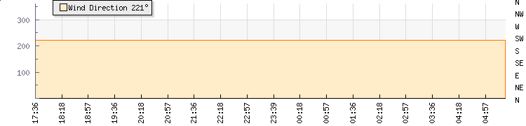 In the last few minutes the wind was South Westerly at an average speed of 0 kmh, reaching up to 0 kmh and a low of 0 kmh. The gust strength is0 kmh above the minimum speed |