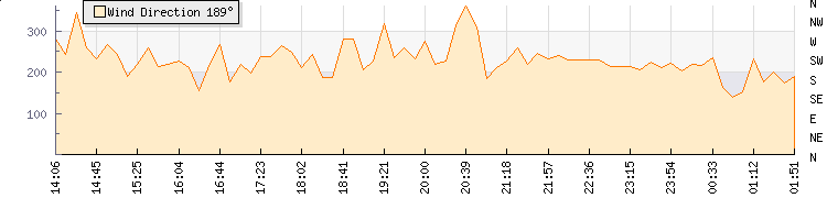 In the last few minutes the wind was South South West at an average speed of 1 kmh, reaching up to 2 kmh and a low of 0 kmh. The gust strength is2 kmh above the minimum speed |