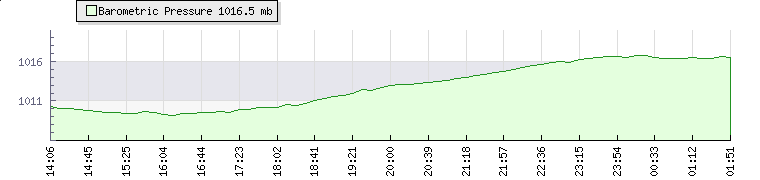 | Wind Speed: | 0|1|2 kmh | Wind Direction: | SSW 204° | Temperature: | 18.3°C | | Wet Bulb: | 15.6°C | Discomfort: | 75 | Humidity: | 77% | | Rainfall Today: | 0mm | 12 hrs Rainfall: | 0mm | 24 hrs Rainfall: | 0mm | | Barometer: | 1016.5mb | Dew Point: | 14.2°C | Clouds AGL: | 1643ft (501 m) | | Density-Alt: | 2290ft (698 m) | Fire Danger: | |