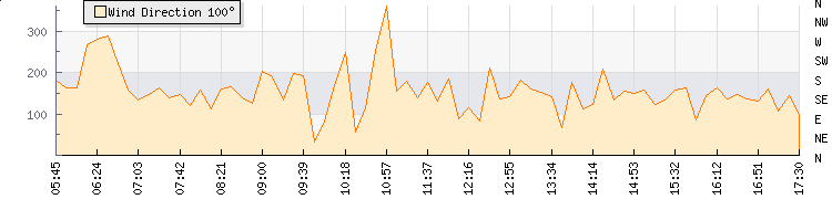 | Wind Gust: | 65 km/h | Min Temp: | 7.3 °C | Max Temp: | 30.8 °C | | Wind Average: | 45 km/h | Min Hum: | 33 % | Max Hum: | 87 % | |  |