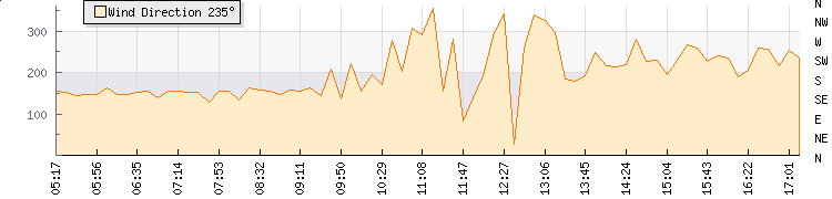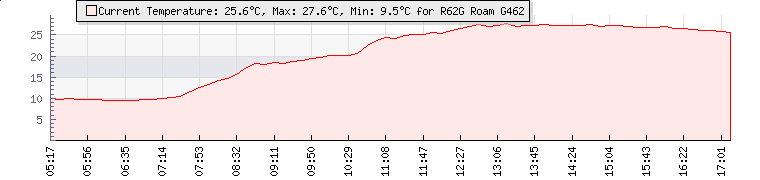 | Wind Gust: | 32 mph | Min Temp: | 9.5 °C | Max Temp: | 27.6 °C | | Wind Average: | 22 mph | Min Hum: | 46 % | Max Hum: | 96 % | |  |