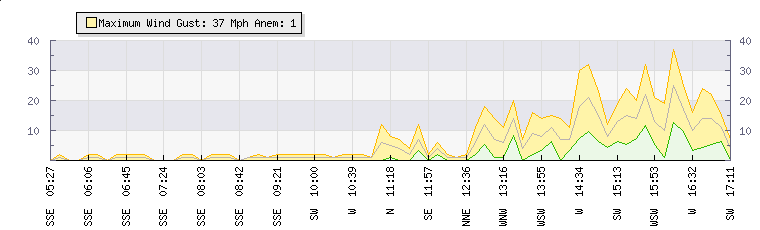 In the last few minutes the wind was South Westerly at an average speed of 22 mph, reaching up to 32 mph and a low of 12 mph. The gust strength is20 mph above the minimum speed |