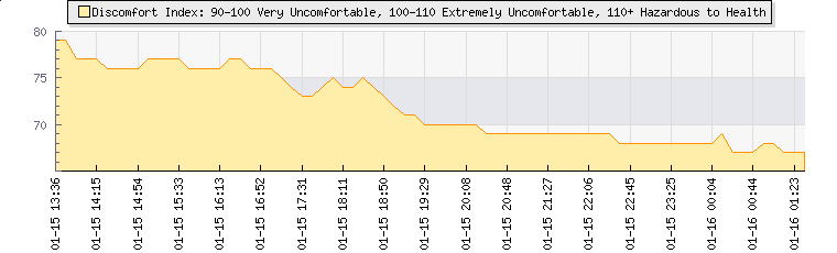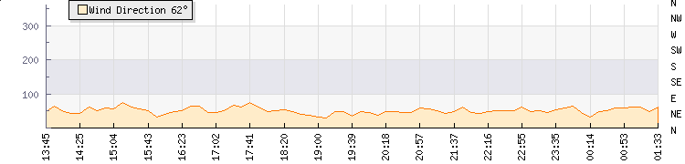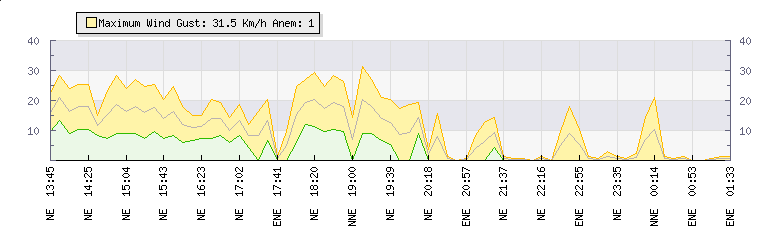 In the last few minutes the wind was East North East at an average speed of 1 kmh, reaching up to 2 kmh and a low of 0 kmh. The gust strength is2 kmh above the minimum speed |