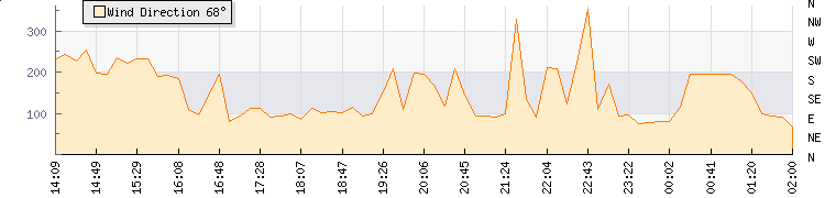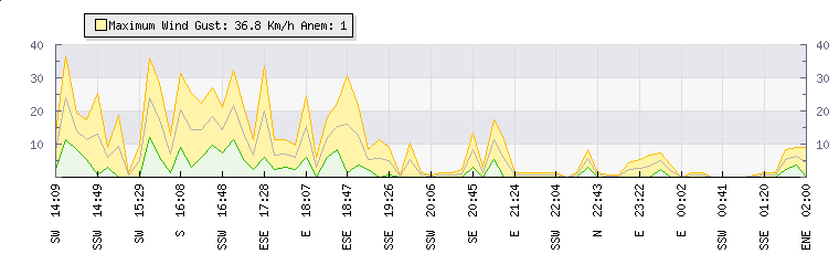 In the last few minutes the wind was South South West at an average speed of 0 kmh, reaching up to 0 kmh and a low of 0 kmh. The gust strength is0 kmh above the minimum speed |