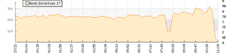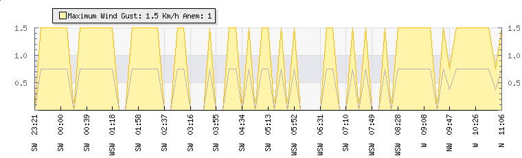 In the last few minutes the wind was West South West at an average speed of 1 kmh, reaching up to 2 kmh and a low of 0 kmh. The gust strength is2 kmh above the minimum speed |