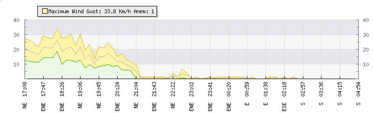 In the last few minutes the wind was Southerly at an average speed of 0 kmh, reaching up to 0 kmh and a low of 0 kmh. The gust strength is0 kmh above the minimum speed |