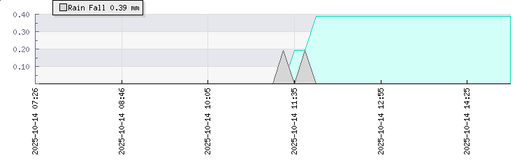In the last few minutes the wind was Easterly at an average speed of 15 kmh, reaching up to 21 kmh and a low of 10 kmh. The gust strength is11 kmh above the minimum speed |