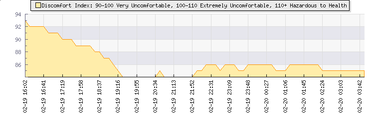 Wet Bulb:18.9°CDiscomfort:86Humidity:71%