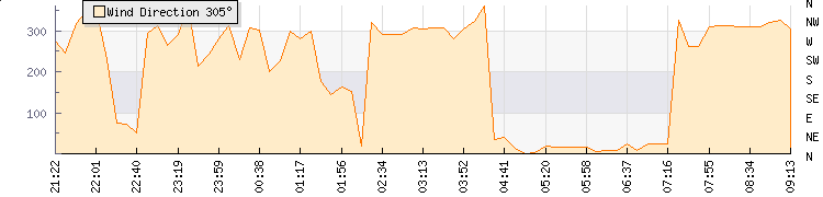 In the last few minutes the wind was North North East at an average speed of 0 mph, reaching up to 0 mph and a low of 0 mph. The gust strength is0 mph above the minimum speed |
