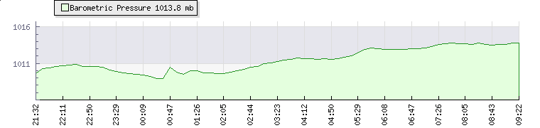 Wind Speed: | 0|0|0 mph | Wind Direction: | NNE 17° | Temperature: | 14°C | Wet Bulb: | 13.3°C | Discomfort: | 65 | Humidity: | 94% | Rainfall Today: | 0.3mm | 12 hrs Rainfall: | 0.3mm | 24 hrs Rainfall: | 0.3mm | Barometer: | 1012.4mb | Dew Point: | 13°C | Clouds AGL: | 380ft (116 m) | Density-Alt: | 220ft (67 m) | Fire Danger: | |