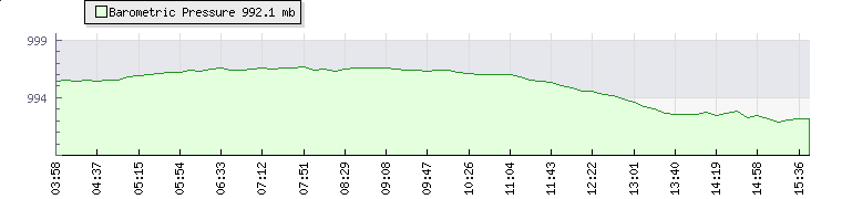 | Wind Gust: | 77 km/h | Min Temp: | 23.4 °C | Max Temp: | 28.2 °C | | Wind Average: | 59 km/h | Min Hum: | 75 % | Max Hum: | 87 % | |  |