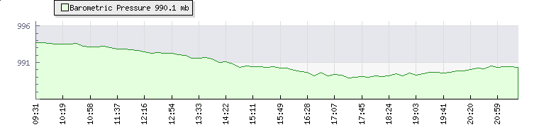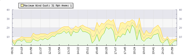 | Wind Gust: | 31 mph | Min Temp: | 18.8 °C | Max Temp: | 26.7 °C | | Wind Average: | 26 mph | Min Hum: | 73 % | Max Hum: | 92 % | |  |
