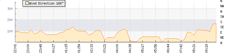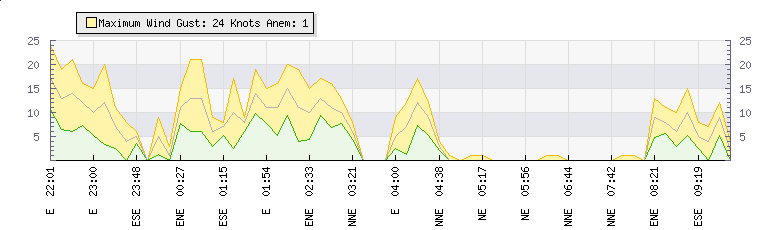In the last few minutes the wind was East South East at an average speed of 5 knots, reaching up to 7 knots and a low of 2 knots. The gust strength is5 knots above the minimum speed |