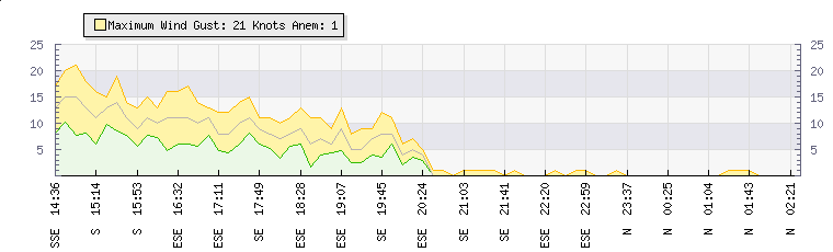 In the last few minutes the wind was Southerly at an average speed of 10 knots, reaching up to 13 knots and a low of 8 knots. The gust strength is5 knots above the minimum speed |