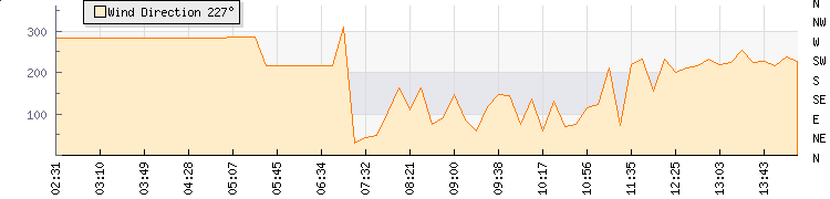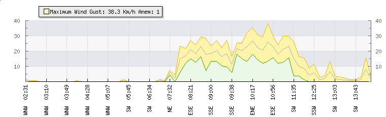 In the last few minutes the wind was South Westerly at an average speed of 2 kmh, reaching up to 4 kmh and a low of 0 kmh. The gust strength is4 kmh above the minimum speed |
