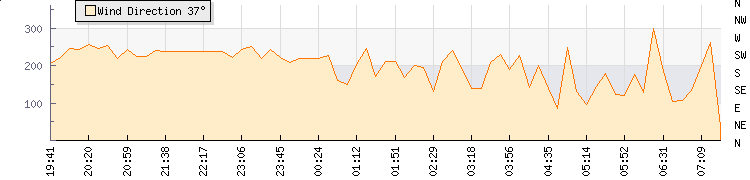 In the last few minutes the wind was East South East at an average speed of 4 mph, reaching up to 8 mph and a low of 0 mph. The gust strength is8 mph above the minimum speed |