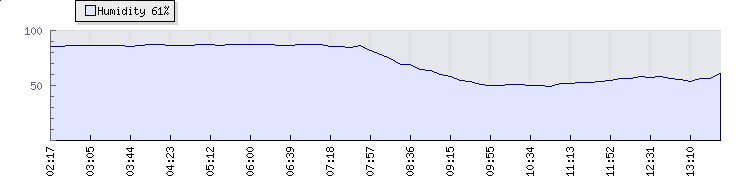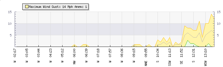 In the last few minutes the wind was South Easterly at an average speed of 1 mph, reaching up to 2 mph and a low of 0 mph. The gust strength is2 mph above the minimum speed |