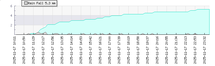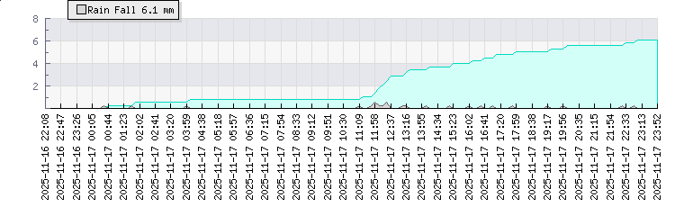 | Wind Gust: | 35 km/h | Min Temp: | 8.4 °C | Max Temp: | 14.2 °C | | Wind Average: | 23 km/h | Min Hum: | 90 % | Max Hum: | 100 % | |  |