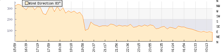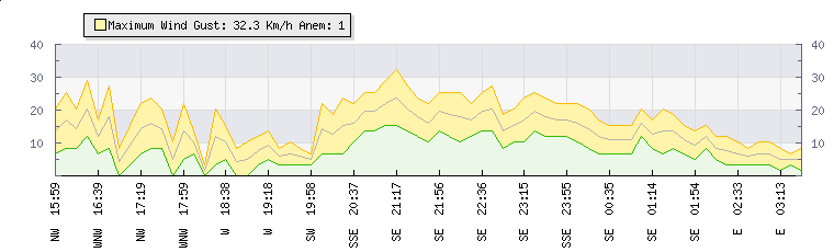 In the last few minutes the wind was Easterly at an average speed of 7 kmh, reaching up to 10 kmh and a low of 3 kmh. The gust strength is7 kmh above the minimum speed |
