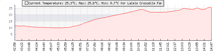 | GPS Co-ordinates: | S 24º 27' 33, E 28º 34' 26 | | ASL: | 3527 feet | | Sunrise / Sunset: | 05:15 / 18:24 | | Beaufort Scale: | Light Breeze |