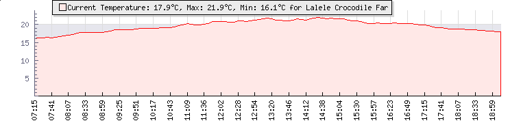 | GPS Co-ordinates: | S 24º 27' 33, E 28º 34' 26 | | ASL: | 3527 feet | | Sunrise / Sunset: | 05:16 / 18:23 | | Beaufort Scale: | Light Breeze |