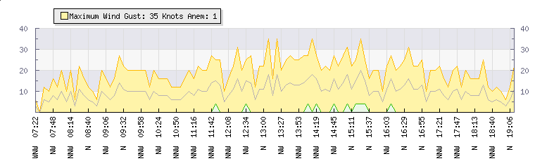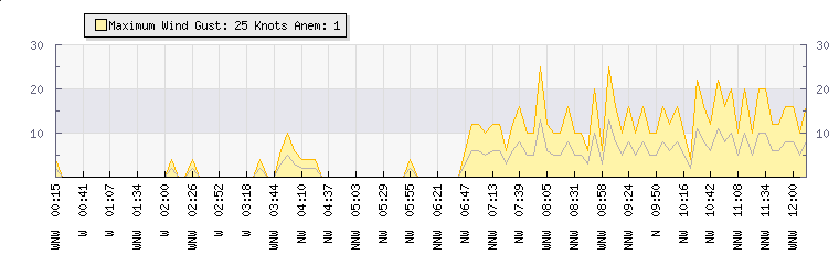 In the last few minutes the wind was Northerly at an average speed of 5 knots, reaching up to 10 knots and a low of 0 knots. The gust strength is10 knots above the minimum speed |