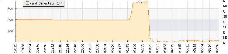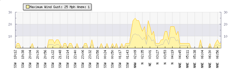 In the last few minutes the wind was South South West at an average speed of 0 mph, reaching up to 0 mph and a low of 0 mph. The gust strength is0 mph above the minimum speed |